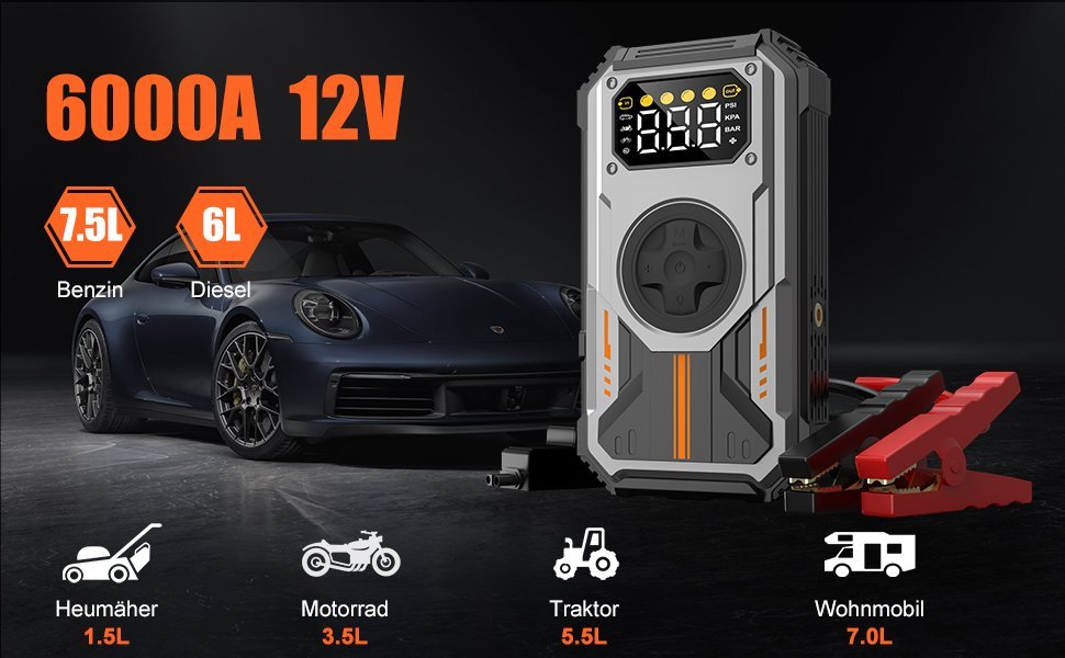 Su potencia de 6000A es impresionante, funciona perfectamente con mi veh¨ªculo de gasolina 8.5L y tambi¨¦n con veh¨ªculos di¨¦sel de hasta 7.0L.