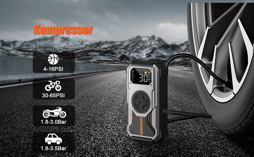 Incluye un compresor de aire integrado de 150 PSI, ideal para inflar neum¨¢ticos, balones o colchones en cualquier momento.